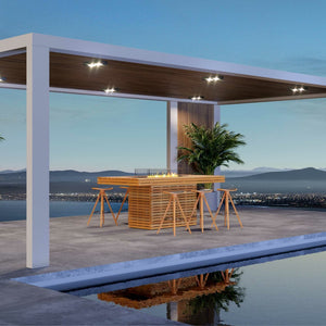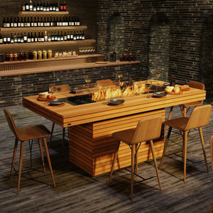 It is perfect for entertaining friends or family, bringing everyone together around an elegant fire pit bar.