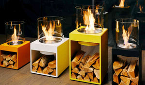 Choose from various colours to complement your personal style and make a statement with this eye-catching portable fireplace.